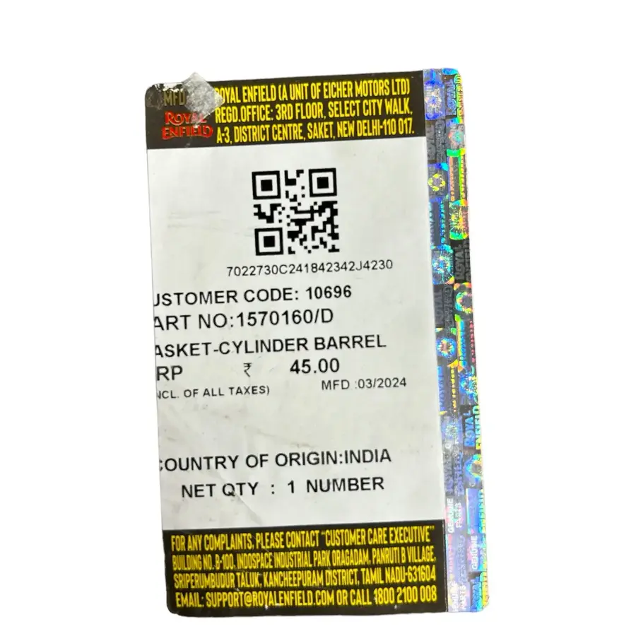 1570160/D GASKET-CYLINDER BARREL ROYAL ENFIELD REBORN CLASSIC 350CC METEOR 350CC HUNTER 350CC