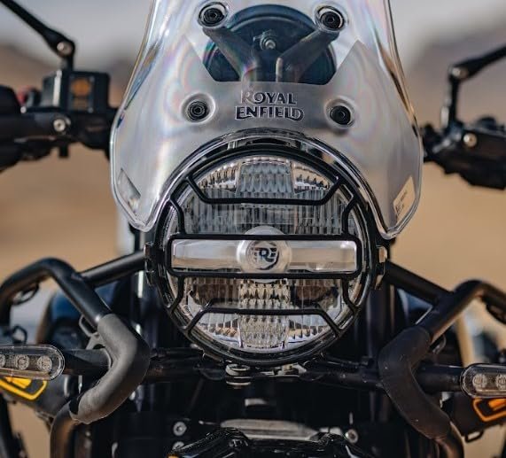 1. Enhance the rugged aesthetic of your Royal Enfield Himalayan with our sleek Black Headlight Grill. Designed specifically for this iconic motorcycle, this grill not only adds a touch of style but also provides essential protection for your headlight against debris and impacts. Crafted from durable materials, it ensures longevity and resilience on all your adventures. Upgrade your ride with this essential accessory and ride with confidence, knowing your headlight is safeguarded while looking effortlessly cool.