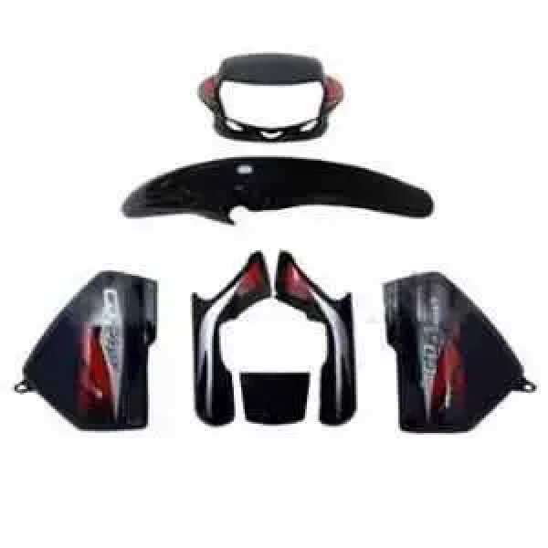 Introducing the ULTRA Black & Red Full Body Kit for Honda CD Deluxe U05, a game-changer for motorcycle enthusiasts. This cutting-edge kit is meticulously designed to enhance your beloved motorcycle’s performance and aesthetics, taking your riding experience to unparalleled heights. Crafted with precision, the ULTRA Bike Full Body Kit is constructed from high-quality, lightweight materials, ensuring optimal durability without compromising weight. It seamlessly integrates with your bike, providing a sleek, streamlined appearance that turns heads wherever you go. With its sleek lines and futuristic design, this kit adds a touch of sophistication to your ride, making you the envy of fellow bikers. But the ULTRA Bike Full Body Kit isn’t just about looks—it’s about performance too. Equipped with aerodynamic features, this kit reduces wind resistance, allowing you to glide effortlessly through the air. Whether you’re speeding along flat roads or conquering challenging terrains, the reduced drag provided by the body kit gives you a competitive edge, maximizing your speed and efficiency. The kit includes a range of components that work harmoniously to enhance your riding experience. From the ergonomic handlebars that provide superior grip and control, to the lightweight carbon fiber frame that ensures optimum power transfer, every aspect of the ULTRA Bike Full Body Kit is designed to optimize your performance on the road or trail. Installation of the ULTRA Bike Full Body Kit is a breeze, thanks to the comprehensive installation guide and included mounting hardware. Within minutes, you can transform your ordinary bike into a high-performance machine.
