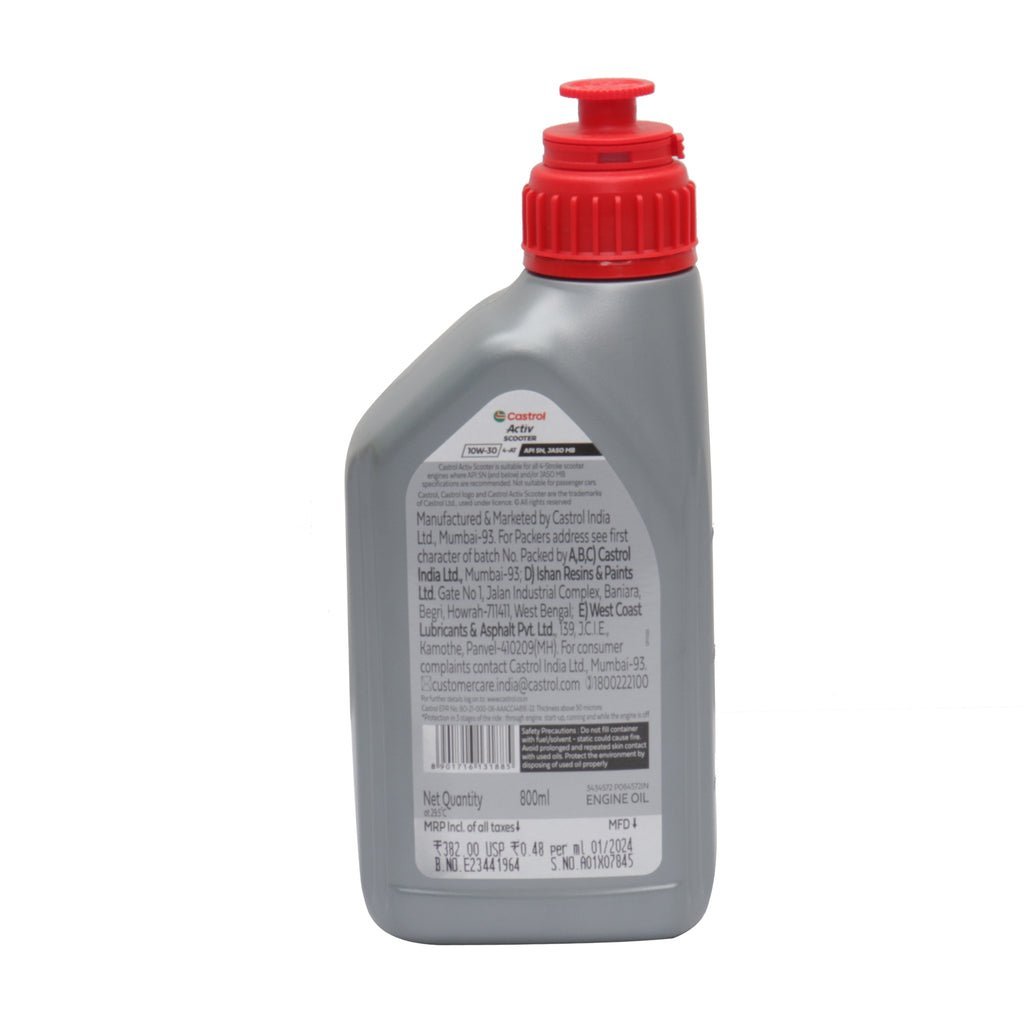 With its 800 ml capacity, this bottle of engine oil offers ample supply for multiple oil changes, making it a cost-effective choice for scooter owners. Whether you use your scooter for daily commuting or occasional rides, the Castrol Active Scooter 10W30 800 ml is a trusted choice to keep your scooter’s engine running smoothly and efficiently.