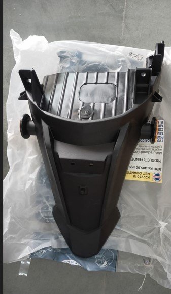 1. Enhance the look and functionality of your TVS Ntorq 125 with the Fender Complete, Rear. Designed specifically for this model, this rear fender offers superior protection against mud and debris, ensuring your ride remains clean and stylish. Crafted from durable materials, it guarantees longevity and resilience against the elements, making it an essential upgrade for any Ntorq 125 owner. Easy to install, this fender not only improves your scooter's aesthetics but also contributes to a smoother riding experience. Upgrade your ride today and enjoy the perfect blend of style and practicality.