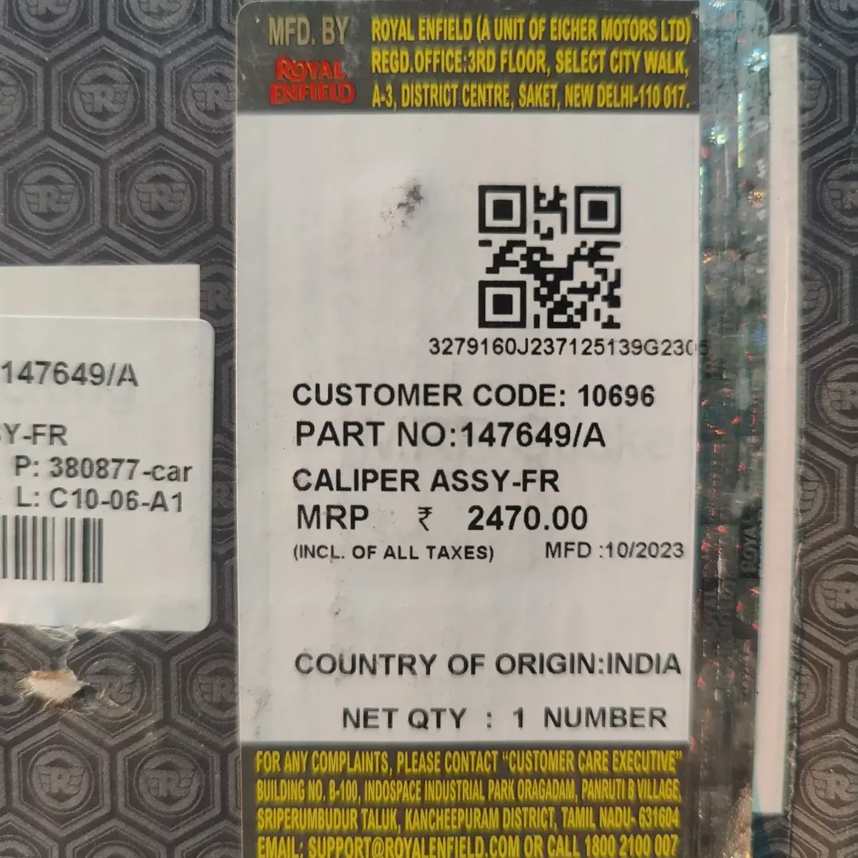 HomeShopbike spareFront Caliper Assy- Fr/147649/a Classic 350 Thunderbird 350 Bs3 Bs4 Bs6 Front Caliper Assy Royal Enfield