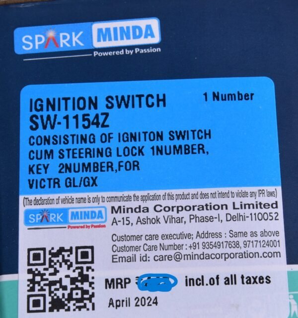 1. Enhance the security and functionality of your TVS Victor GL, GX, or Spark with the Ignition Switch Cum Lock from Minda. This high-quality ignition switch is designed to provide reliable performance, ensuring your vehicle starts smoothly while safeguarding it against theft. Crafted with precision, it seamlessly integrates with your bike's electrical system, offering easy installation and durability for long-lasting use. Upgrade your ride today and experience peace of mind with this essential component.
