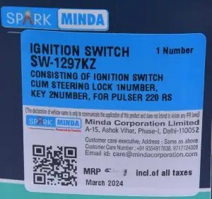 1. Upgrade your Bajaj Pulsar 200RS or 200AS with the reliable Ignition Switch from Spark Minda, designed for optimal performance and durability. This essential component ensures seamless ignition and enhances the overall functionality of your motorcycle, providing peace of mind on every ride. Crafted with precision, it guarantees a perfect fit and easy installation, making it a must-have for any Pulsar enthusiast looking to maintain their bike's efficiency and safety.