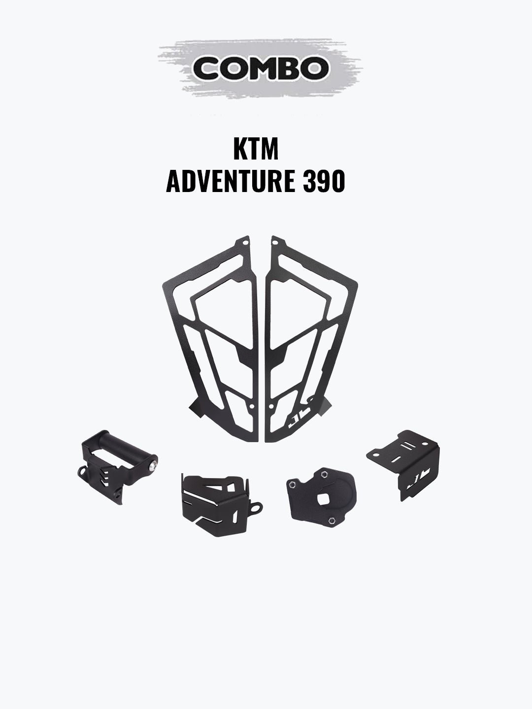 Equip your JB Racing Adventure 390 with the ultimate combination of accessories, available now at Bandidos Pitstop. This comprehensive package includes a range of accessories carefully curated to enhance both the performance and aesthetics of your motorcycle. From headlight grill and GPS mount for added protection to oil cap and side stand base for increased functionality, each component is designed to withstand the rigors of adventure riding while elevating your riding experience to new heights. With easy installation and compatibility tailored specifically for the Adventure 390, these combo accessories seamlessly integrate into your bike’s design, ensuring a perfect fit and reliable performance.