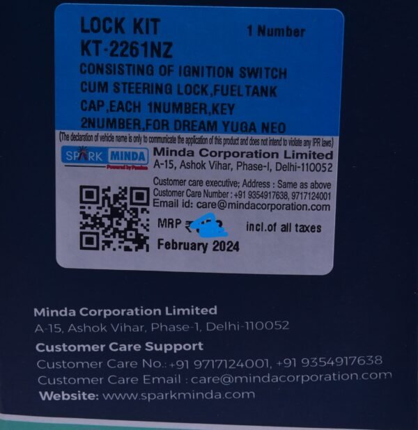 1. Enhance the security of your Honda Dream Yuga Neo with the Lock Kit Set of 2 from Spark Minda. Designed for durability and precision, this lock kit ensures a perfect fit and reliable performance, safeguarding your vehicle against theft. Easy to install and made from high-quality materials, it offers peace of mind while you ride. Upgrade your bike's security today with this essential accessory.