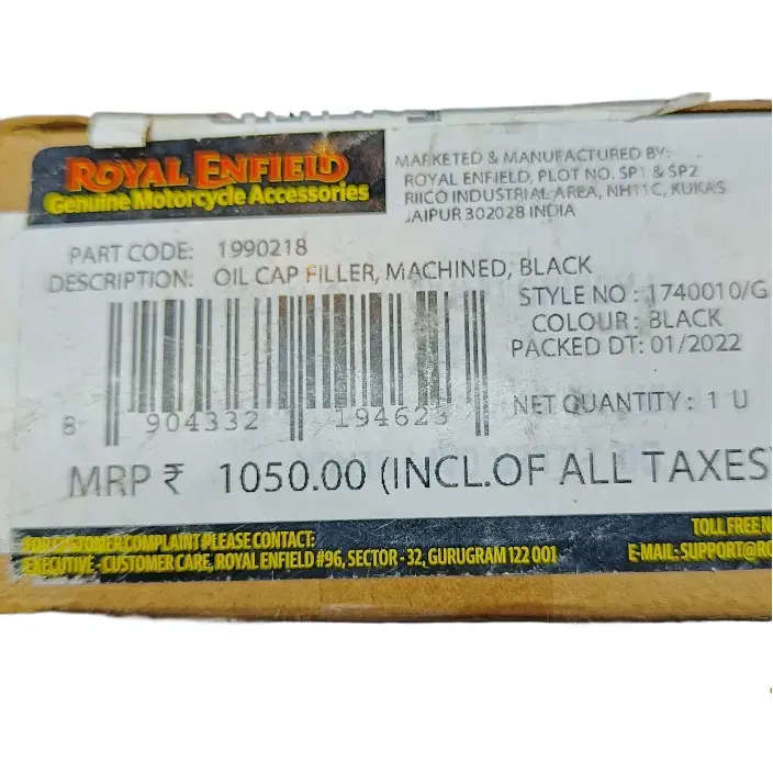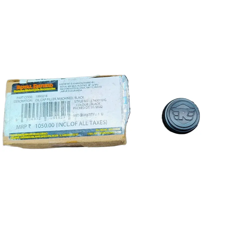 The Oil Cap Filler is a machined, black component designed to fit Royal Enfield motorcycles. This genuine part is a high-quality replacement or upgrade for your motorcycle’s oil cap filler, ensuring a secure and reliable seal. Made with precision and durability in mind, this genuine Royal Enfield part is a perfect fit for enthusiasts looking to maintain the authenticity