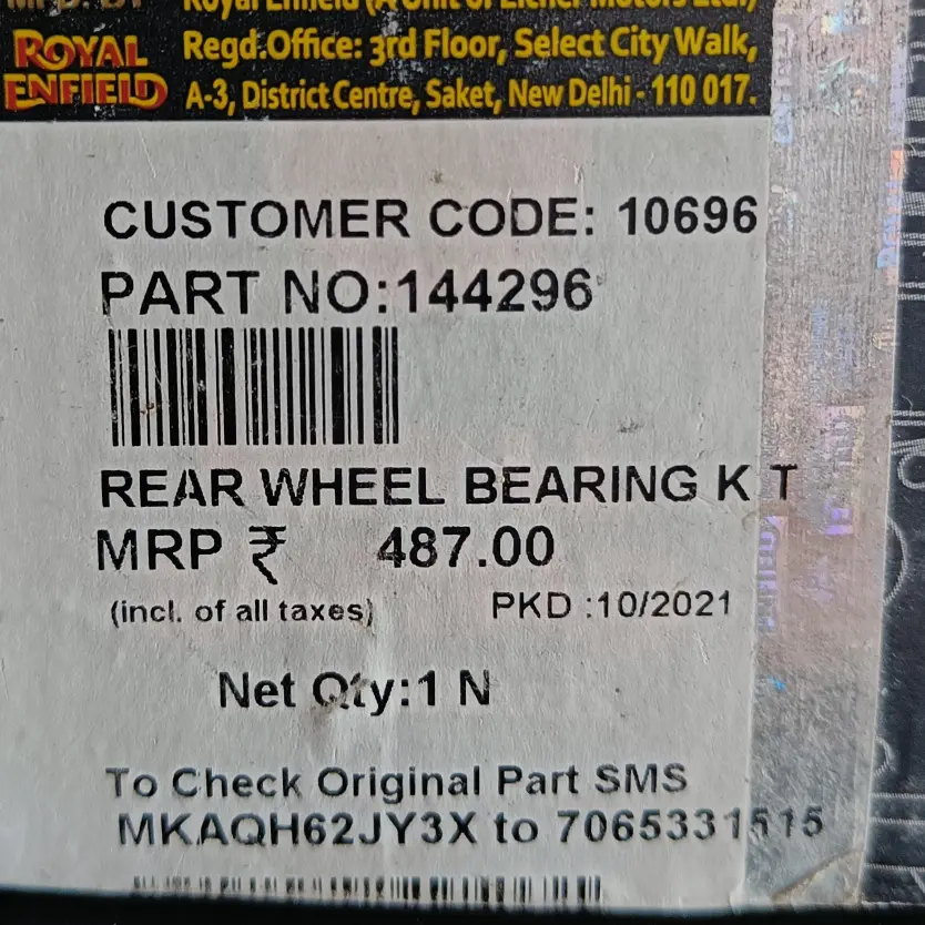 Royal Enfield Bullet 350 Classic 350 Thunderbird 350 Rear Wheel Bearing