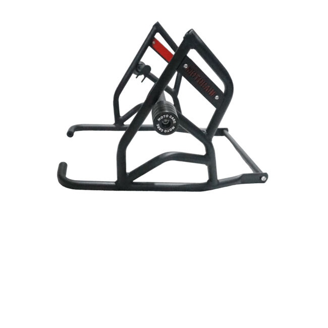 Introducing the MotoCare Dual Slider Crash Guard Type 2 with Plate, meticulously crafted to elevate protection and style for the Royal Enfield Himalayan 411.