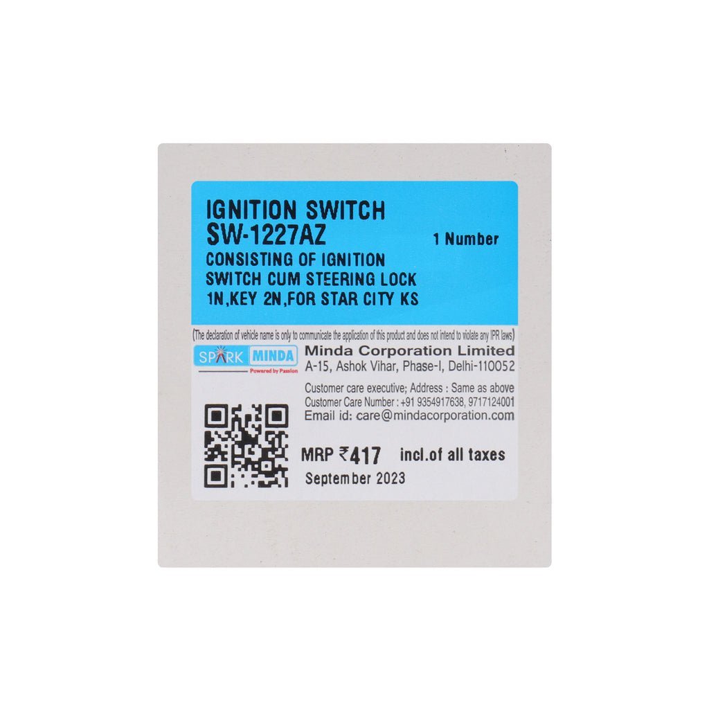 2. Crafted with precision and attention to detail, the Spark Minda Ignition Switch is built to withstand the rigors of daily use and provide long-lasting durability. It features a sturdy construction and is made from premium materials, ensuring optimal performance and reliability. This ignition switch is engineered to deliver a smooth and effortless ignition process, allowing you to start your vehicle with ease.