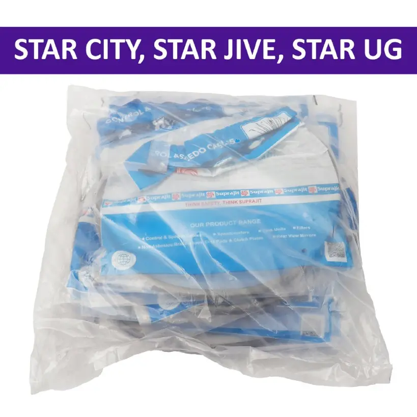 1. The Suprajit Clutch Cable is a high-quality replacement part designed specifically for the TVS Star City, Star Jive, and Star UG models. Made from durable materials, this clutch cable is built to withstand the rigors of daily use and provide reliable performance. With precise engineering and manufacturing, this cable ensures smooth and efficient operation of the clutch system, allowing for seamless gear changes and optimal driving experience.
