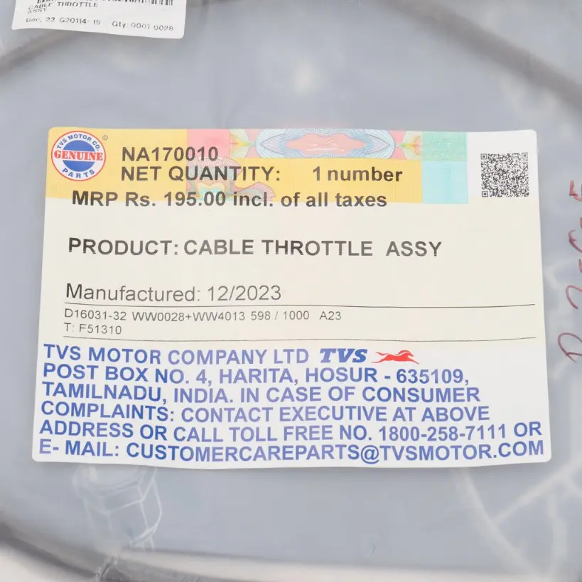 2. Made from premium materials, the TVS Accelerator Cable for City Plus offers exceptional strength and flexibility. It is engineered to meet or exceed the original equipment manufacturer (OEM) specifications, guaranteeing a perfect fit and optimal functionality. With its precise design and construction, this accelerator cable ensures smooth and accurate throttle response, allowing drivers to have better control over their vehicle’s acceleration.