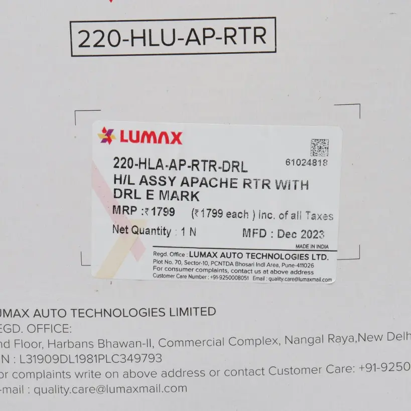2. The Lumax Head Light Assembly features a sleek and modern design that seamlessly integrates with the Apache RTR’s aesthetics. It is made from premium materials that ensure long-lasting performance and durability. The assembly includes the headlight housing, lens, and bulbs, making it a complete package for easy installation. With its powerful illumination, this headlight assembly ensures enhanced visibility during night rides, improving safety for the rider and other road users. Whether you need to replace a damaged headlight or simply want to upgrade the look of your Apache RTR, the Lumax Head Light Assembly is the perfect choice.