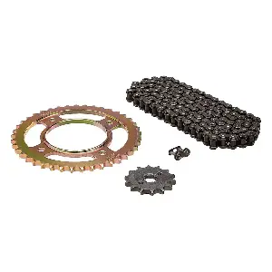 Uno Minda CH-4010 Chain Sprocket Kit for Honda Dream Neo, Cd110 Dream comes with everything you need to replace your old chain with a high-quality link belt type chain. This is made of premium quality materials, has strong durability, and is easy to disassemble and clean. It also exceeds all original equipment timing chain specifications. Get the best for your bike today by buying the Roll-On sprocket kit and get great performance from your bike. The roll-on chain is made from high quality material that is durable, easy to disassemble, and easy to clean. It also comes with an advanced tooth profile, concentricity, and accuracy of fit that provides maximum power transfer and long-life. This kit also includes an extremely hardwearing surface which results in increased chainwheel life for your bike. Features:- Roll-on chain, made of high quality material, durable. Exceeds all original equipment timing chain specifications with Premium quality link belt type chain for exceptional durability; chain also available separately. Chain repeated forging, strict control of materials to ensure the strength, easy to disassemble, easy to clean, reusable. Their advanced tooth profile, concentricity and accuracy of fit provide maximum power transfer and long-life. Combination of a very high strength base material and an exceptionally hardwearing surface result in significantly increased chainwheel life. etal-based manufacturing that does not let the product to get corroded easily.