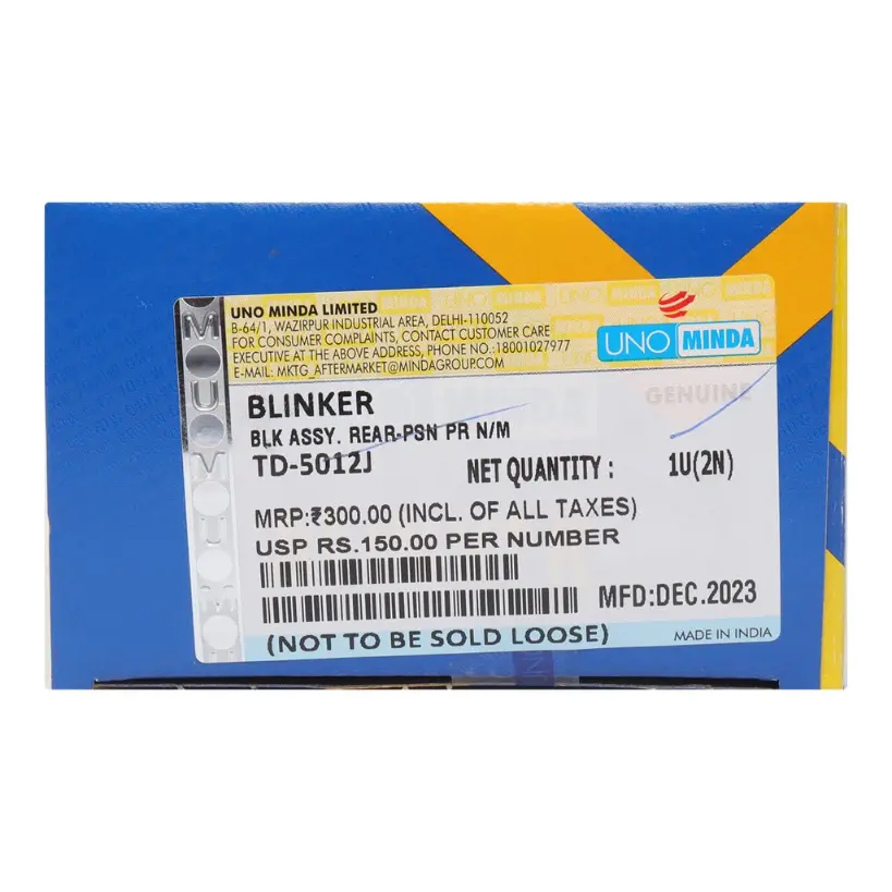 1. The Uno Minda Indicator (Rear) for Passion Pro New is a high-quality replacement indicator designed specifically for the Hero Passion Pro New model. This indicator is manufactured by Uno Minda, a trusted name in the automotive industry known for producing reliable and durable products. The indicator is made from premium materials to ensure long-lasting performance and durability, making it a cost-effective solution for replacing a damaged or malfunctioning indicator on your motorcycle.
